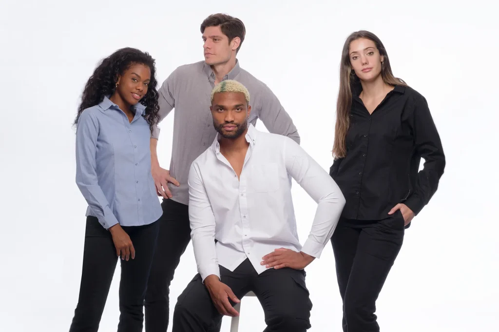 Elige colores, estilos y tu logotipo, asegurando que tus uniformes representen perfectamente la imagen de tu marca.